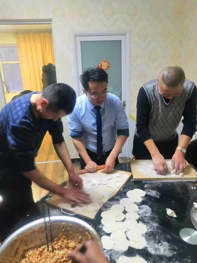下午1点多钟,总经理王伟同志带领队员们开始热火朝天地忙起来。办公室里不时传出一阵阵欢声笑语,现场热闹非凡。大家一来便纷纷“抢占”自己的一席之地。看,有的在揉面,有的在擀皮、有的在调馅,个个动作娴熟,有说有笑唠家常,甚是热闹。